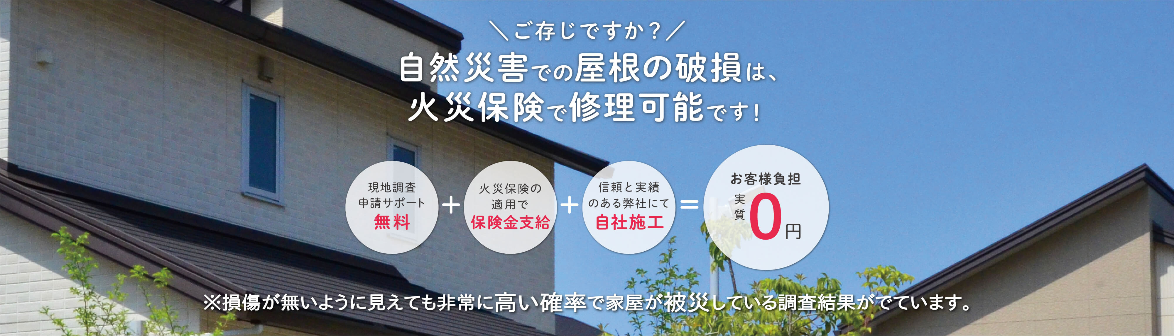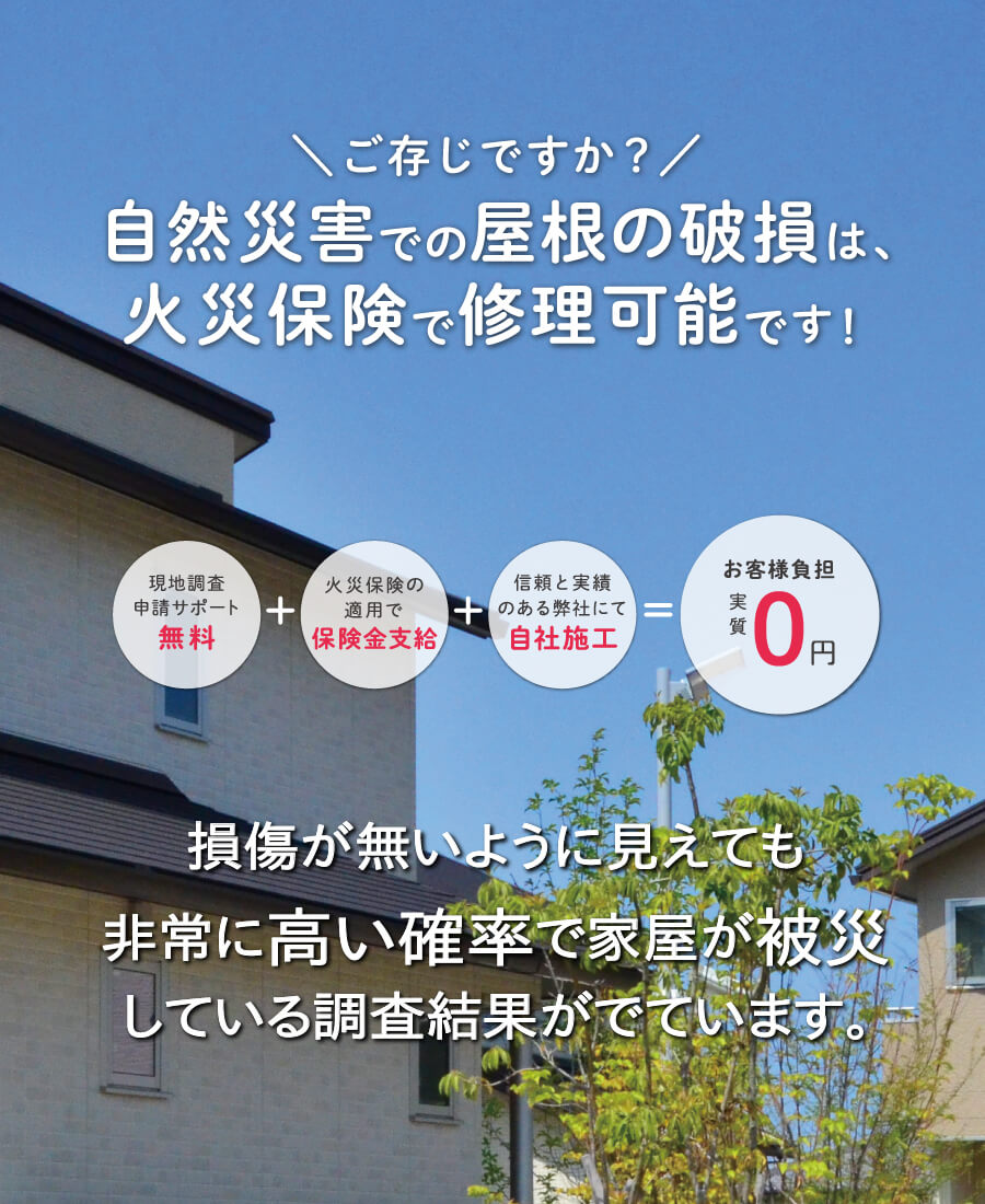 ※屋根修理・外壁修理には火災保険が適用出来る場合があります。お気軽にご相談下さい。